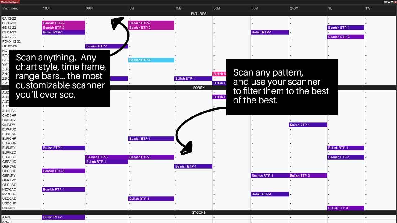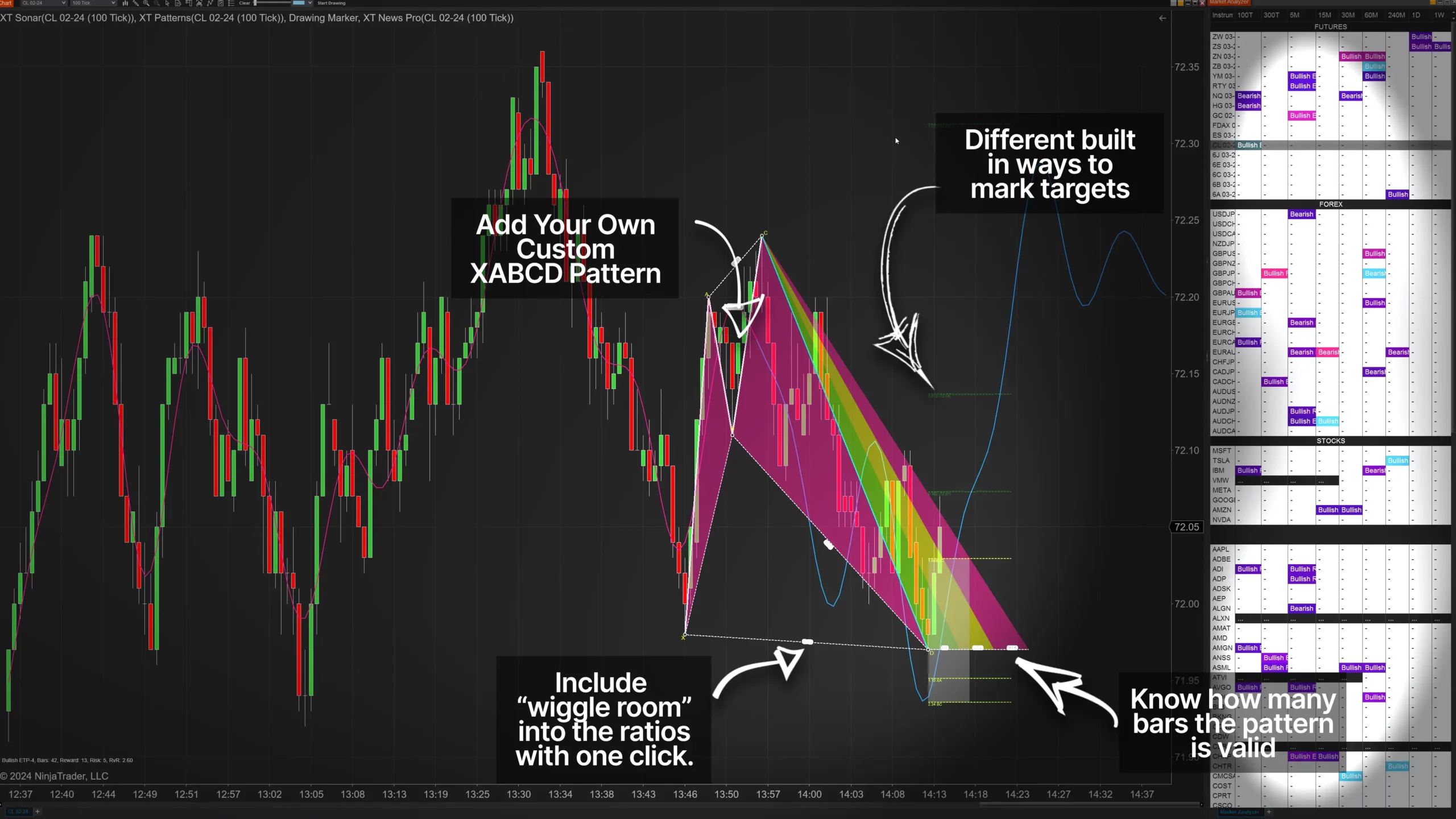 With the XABCD Pattern Suite you can scan any symbol inside of NinjaTrader and you can even add in your own custom pattern which makes this software future proof.
